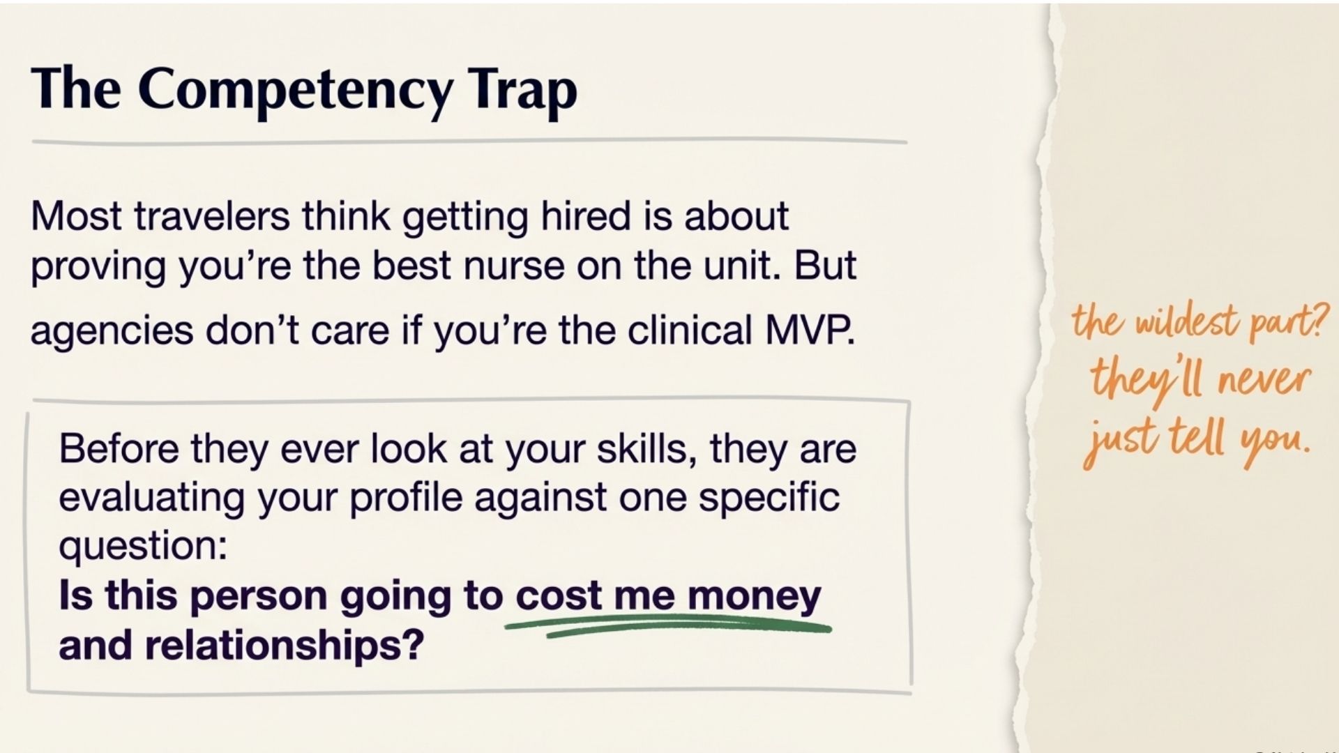 Most travelers think getting hired is about proving you're *good enough*. But agencies aren't screening for competence. They're screening for *risk*.